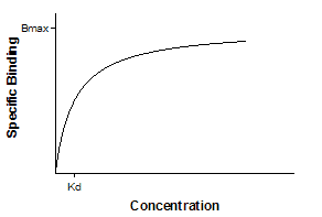 •Bmax is the maximum number of binding sites, expressed in the same units as the Y-axis (usually radioactive counts per minute, sites per cell, or fmol of receptor per mg of tissue).