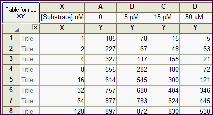 Note that Prism reads only the number in the column title. In this example, the units are specified as micromolar, but Prism ignores this and simply reads the numbers. It does not do any unit conversion.