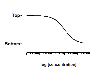 Many log(inhibitor) vs. response curves follow the familiar symmetrical sigmoidal shape. The goal is to determine the IC50 of the inhibitor - the concentration that provokes a response half way between the maximal (Top) response and the maximally inhibited (Bottom) response.