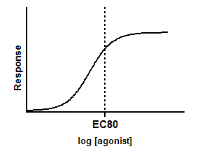 Many log(dose) response curves follow the familiar symmetrical sigmoidal shape. The usual goal is to determine the EC50 of the agonist - the concentration that provokes a response half way between the basal (Bottom) response and the maximal (Top) response. But you can determine any spot along the curve, say a EC80 or EC90.