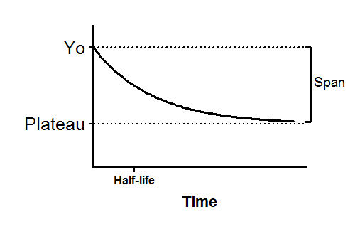 Y=(Y0 - Plateau)*exp(-K*X) + Plateau