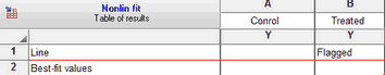 What happens if a fit is flagged? Not much! The word "Flagged" appears at the top of the fit as shown below. Use this as a cue to take a more careful look at this data set and its fit.