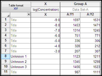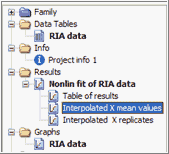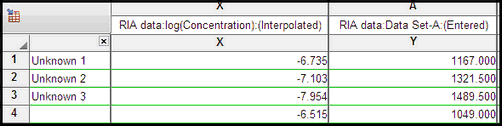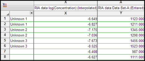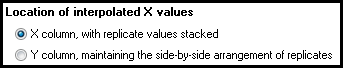 The second page, Interpolated X replicates, shows individual replicate values for the interpolated results. The X column maintains the same meaning as it does in the data table you entered. To do so, with only a single X column, requires that the replicates be stacked.