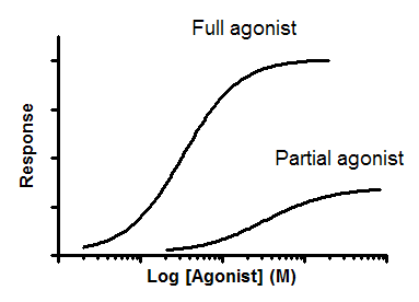 The EC50, fit by standard dose-response models, is determined by two properties of the agonist: