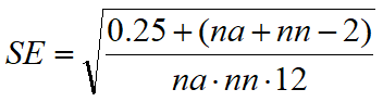 Prism uses the method of Hanley (1), which uses the equation below where A is the area, na and nn are the number of abnormals (patients) and normals (controls).