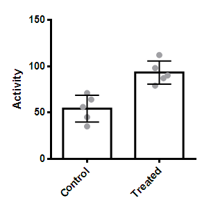 You have two sets of column data that you wish to plot both as a bar graph showing the mean and SD, and also has a scatter graph showing individual values.