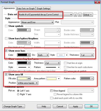 After you choose to create a confidence or prediction band in the diagnostics tab, it should just appear on the graph. You can fine tune its appearance on the graph. Note the following: