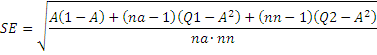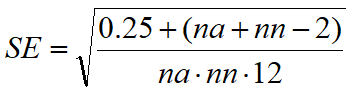 Prism uses the method of Hanley (1), which uses the equation below where A is the area, na and nn are the number of abnormals (patients) and normals (controls).