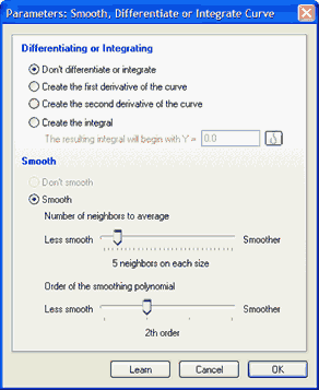 •If you request that Prism both both smooth and convert to a derivative (first or second order) or integral, Prism does the steps sequentially. First it creates the derivative or integral, and then it smooths.