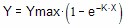 Y starts out equal to zero and increases to a maximum plateau (at equilibrium) equal to YMAX. When X equals 0.6932/K, Y equals 0.5*YMAX.