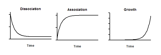 Exponential dissociation vs. association vs. growth