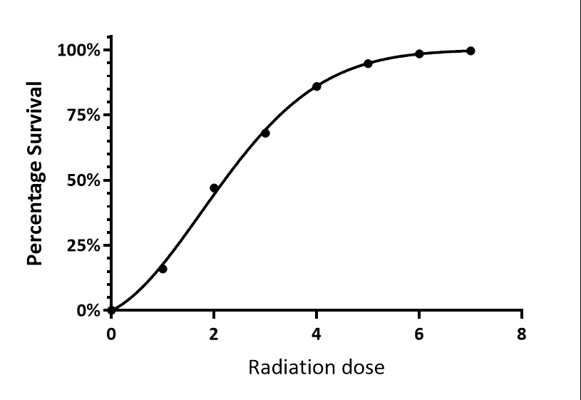 Mammalian cell death after exposure to radiation after a dose D of radiation often follows the linear-quadratic model.