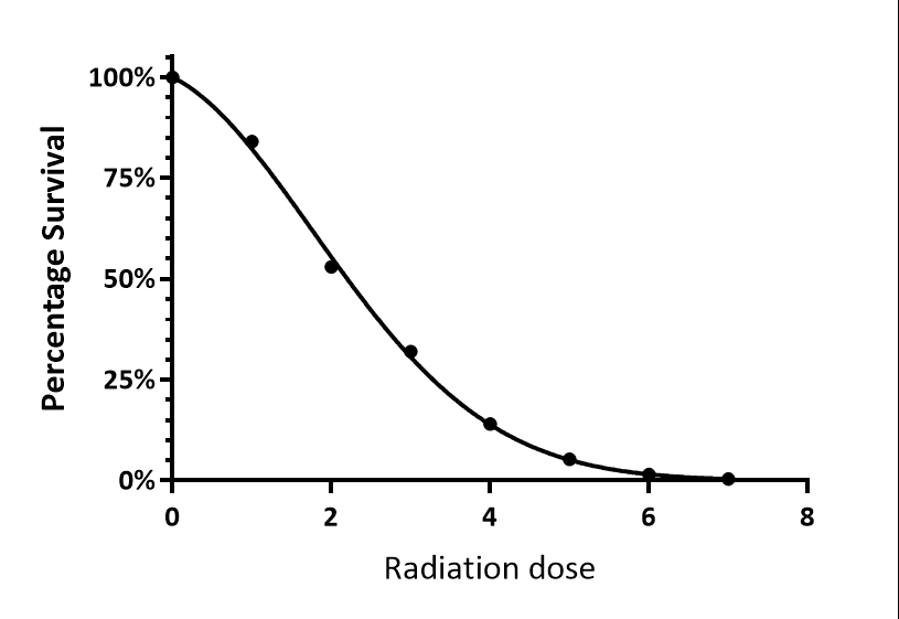 Mammalian cell death after exposure to radiation after a dose D of radiation often follows the linear-quadratic model.