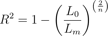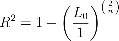 From the equation for this pseudo-R2, we can see that when a model fits the data better (a higher partial likelihood value for Lm), the fraction becomes smaller, and the R2 value is larger. When the partial likelihood for the given model is smaller, the fraction is larger, and the corresponding R2 value is smaller. Like the R2 value seen in normal (least squares) regression, this formula has a minimum value of 0 (if the partial likelihood of the specified model is the same as the null model, R2 will equal zero). However, unlike the standard R2, the upper limit of this pseudo-R2 is not 1! Instead, if the model fits the data perfectly and the likelihood of the model is 1, then the resulting equation is: