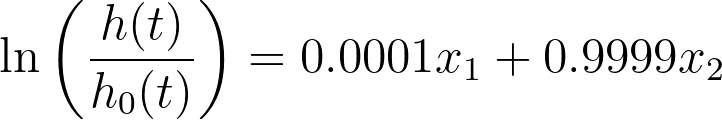 Consider the following case for Cox proportional hazards regression. Let’s assume there is only one predictor variable (x1) and the best-fit parameter estimate for this predictor variable is two. The Cox regression model would be: