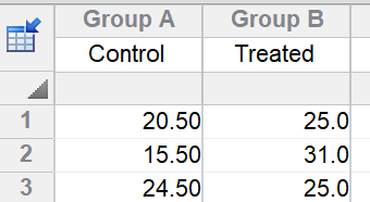 The data as shown at the top of this page appear to be set up for two-way ANOVA.  But running a two-way ANOVA would lead to incorrect or misleading results. Two-way ANOVA would assume that the kind of rat whose data is in row 2 is somehow exposed to control and treated conditions. But in fact the order of the values in each subcolumn is arbitrary, so testing the rows as a "factor" in two-way ANOVA would make no sense.