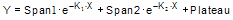 This equation describes a two phase exponential decay. Y starts out equal to Span1+Span2+PLATEAU and decays to PLATEAU with fast and slow components. The two half-lives are 0.6932/K1 and 0.6932/K2. In the figure, the two rate constants differ tenfold, but the spans were equal. The curve is not obviously biphasic, and it takes a very practiced eye to see that the curve does not follow a single phase model.