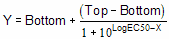 The variable Bottom is the Y value at the bottom plateau; Top is the Y value at the top plateau, and LogEC50 is the X value when the response is halfway between Bottom and Top. LogEC50 is the logarithm of the EC50 (effective concentration, 50%). With different kinds of variables, this variable is sometimes called ED50 (effective dose, 50%), or IC50 (inhibitory concentration, 50%, used when the curve goes downhill).