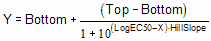 This equation extends the previous equation, but allows for a variable slope. This equation is also called a four-parameter logistic equation.