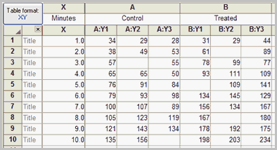 From the Welcome or New Table dialog, choose to create XY data table.