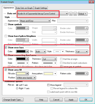 •You can also choose to show an area fill within the error bands.