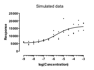 I ran 10,000 simulations, and found that in every case the fit worked well and gave a reasonable answer (with the EC50 within the range of the data). No surprise so far. The data were fitting assuming a model that exactly matched the method used to simulate the data, and those fits worked well.