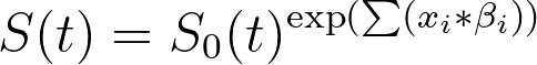 Essentially, this means that the estimated survival at all times for a given individual or group (with a specified set of values for the predictor variables in the model) will be proportionately higher or lower than the baseline survival. Changing the value of the predictor variables won’t ever change the overall shape of the estimated survival curve, it will only change the proportionality of the new estimated survival curve to the determined baseline survival curve.