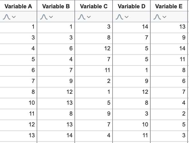 We can easily see that - in general - as Variable A increases, Variable B also increases (a positive correlation). Using these data, we could quickly prepare an XY plot visually showing this relationship. Of course seeing this relationship is easy because there are only two variables!