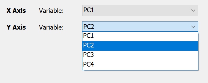 •Changing which PC is plotted on each axis using the Axis Variables section of the dialog